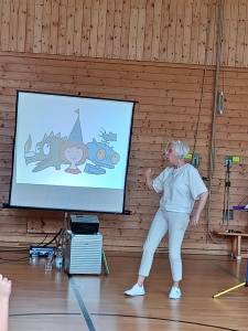 Die farbenfrohen Illustrationen und stimmungsvolle Musik machten die Geschichte „Ritter Rost und das Haustier“ zu einem lebendigen Erlebnis. Für die Kinder war dieser Vormittag ein echtes Highlight – voller Freude, Fantasie und guter Laune.